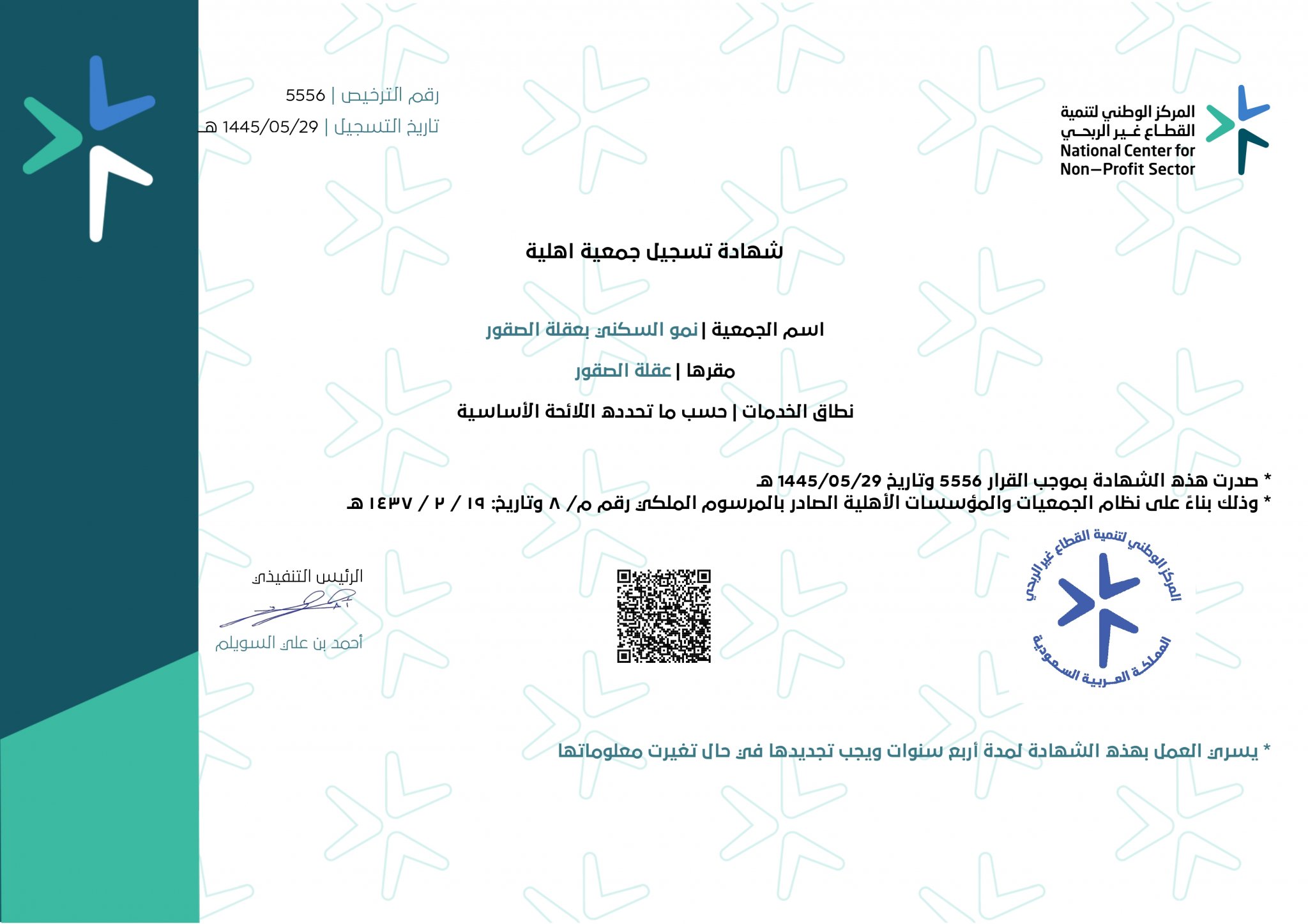 شهادة تسجيل الجمعية