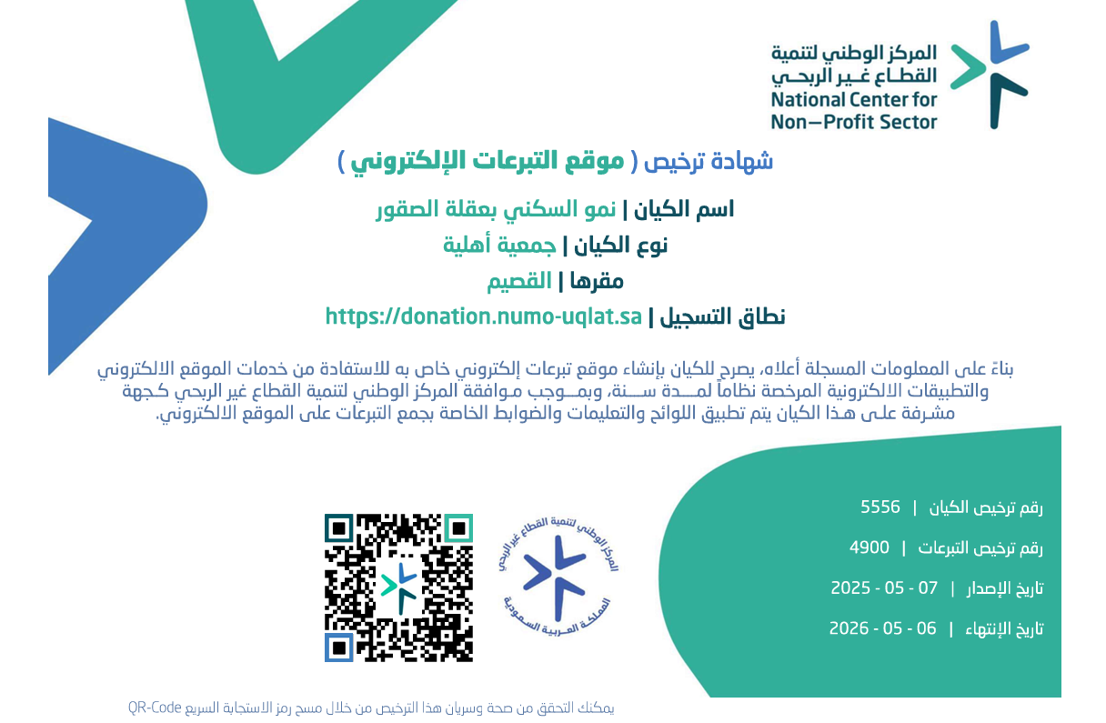 شهادة ترخيص موقع التبرعات